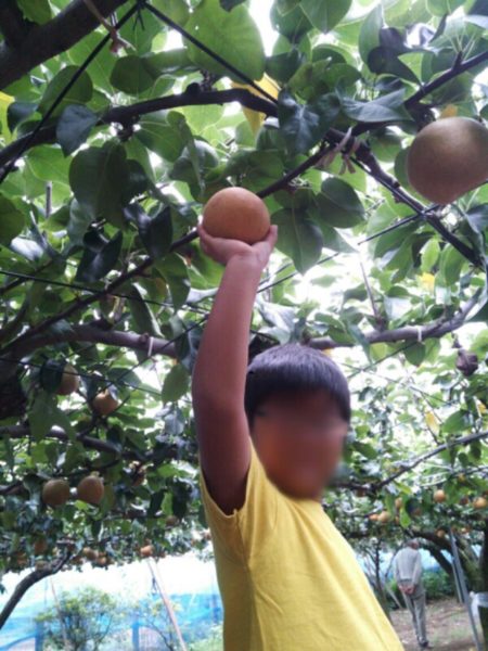 イチゴ狩りなどは、もぎ取ったイチゴをその場で食べる形式ですが、皮を剥かなければいけない梨では難しいですよね。